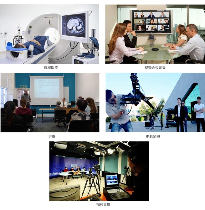 应用领域:高清视频会议、商业发布会、直播演唱会、真人秀节目、户外商业活动、流媒体直播、手术医疗、教学录播、户外广告直播、婚庆现场直播、高精度的专业图像处理多媒体压缩等研究开发应用领域。